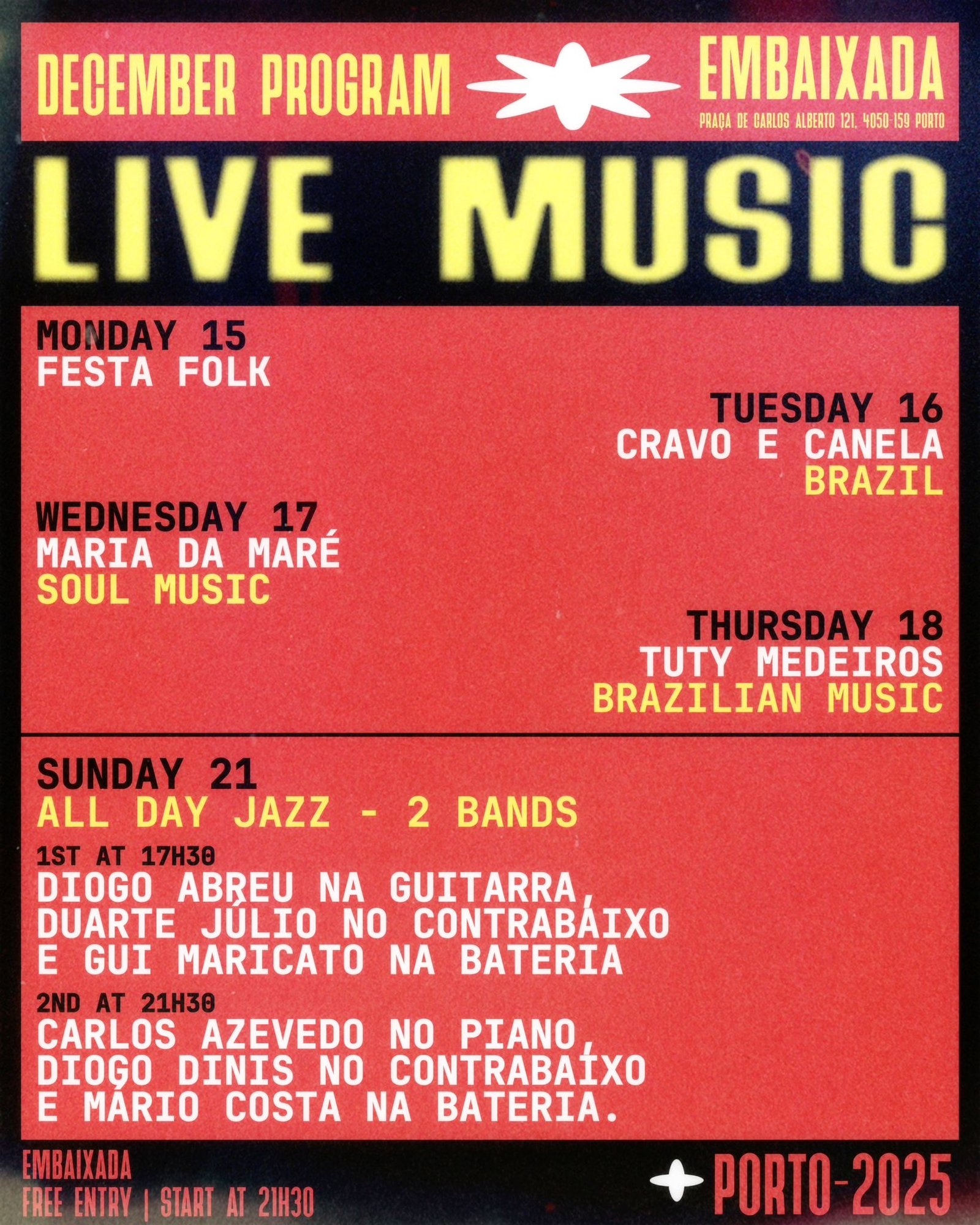 Programação da Embaixada do Porto em Dezembro